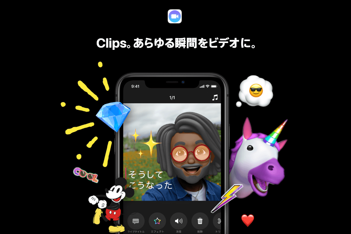 6 clipsの使い方~応用編~ ・ 動画撮影しながらエフェクトを入れる ・ 動画撮影しながら字幕を入れる ・ 動画撮影の時点でシーンという特殊効果を使用する;